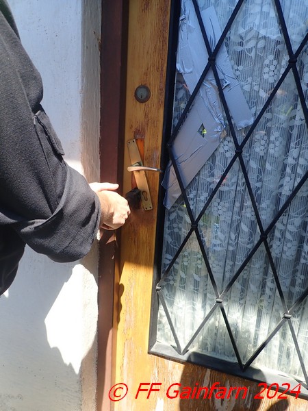 Schlussendlich wurde noch ein neuer Zylinder in die Eingangstür eingebaut, womit der Einsatz, an dem 10 Mann mit Rüstlöschfahrzeug und Kommandofahrzeug beteiligt waren, nach etwa einer Stunde beendet war.