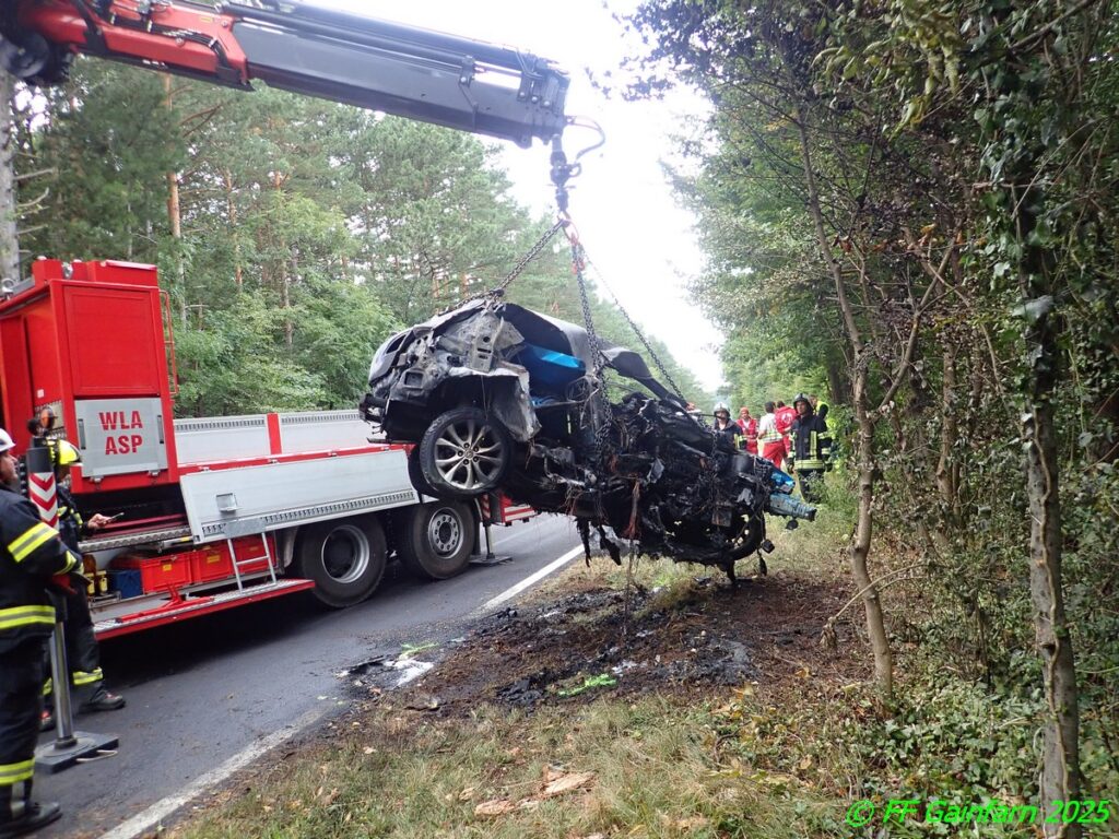 Am Einsatzort wurde ein brennendes Fahrzeug vorgefunden, die örtlich zuständige Feuerwehr Großau war bereits vor Ort und hatte mit den Löscharbeiten begonnen. Sofort wurde vom RLF der FF Gainfarn eine zweite Löschleitung vorgenommen. Es gelang allerdings nicht, den noch im Fahrzeug befindlichen Lenker zu retten.