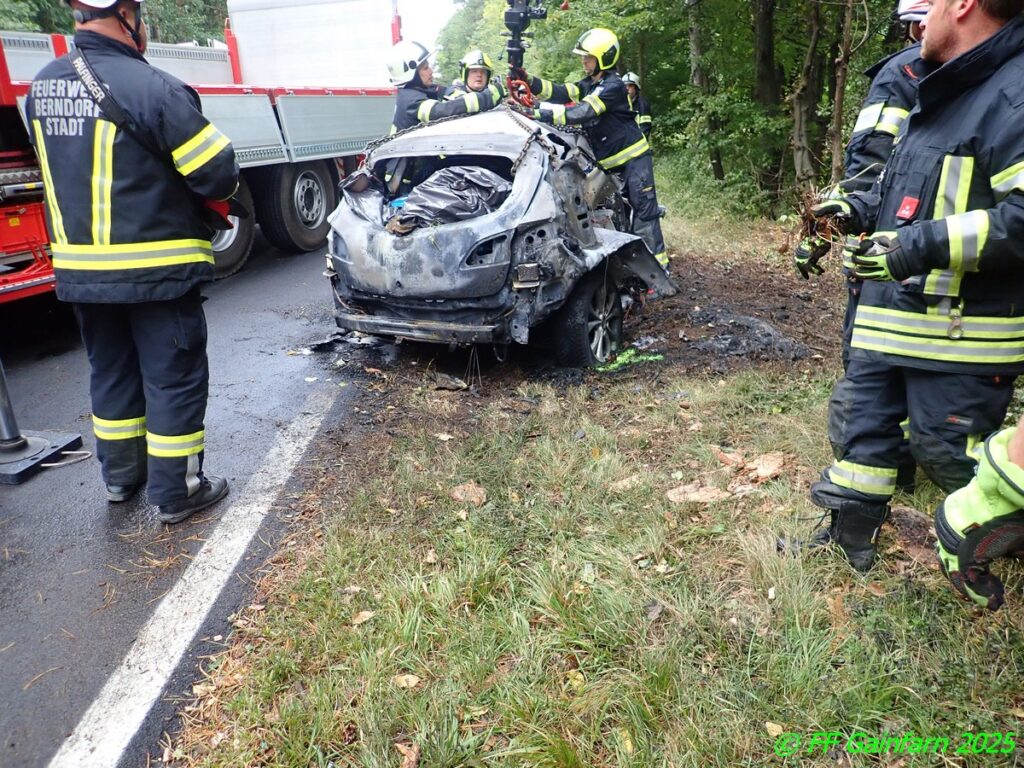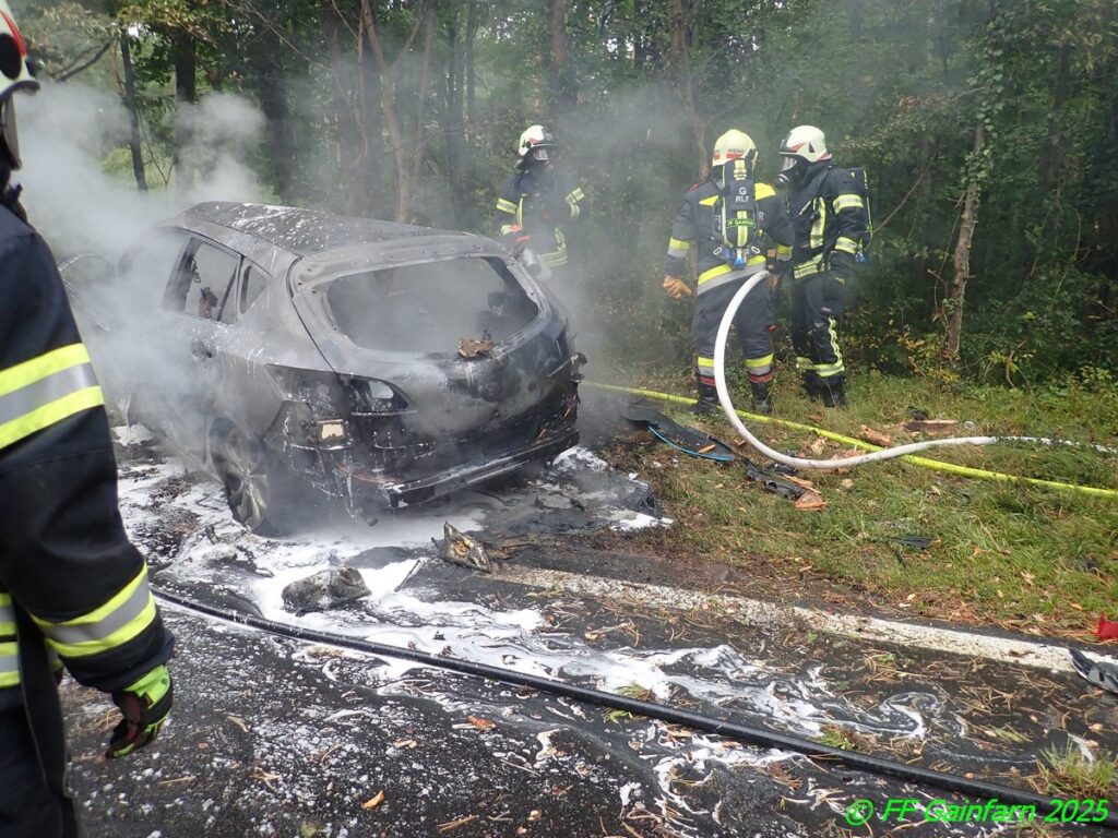 Am 31. 08. 2025 wurde die FF Gainfarn um 12:00 Uhr zu einem technischen Einsatz mit dem Meldebild „T2 Menschenrettung – Fahrzeugbrand mit Zusatz 1 Person noch im Fahrzeug“ auf der B212 zwischen Groß0eau und Berndorf alarmiert.