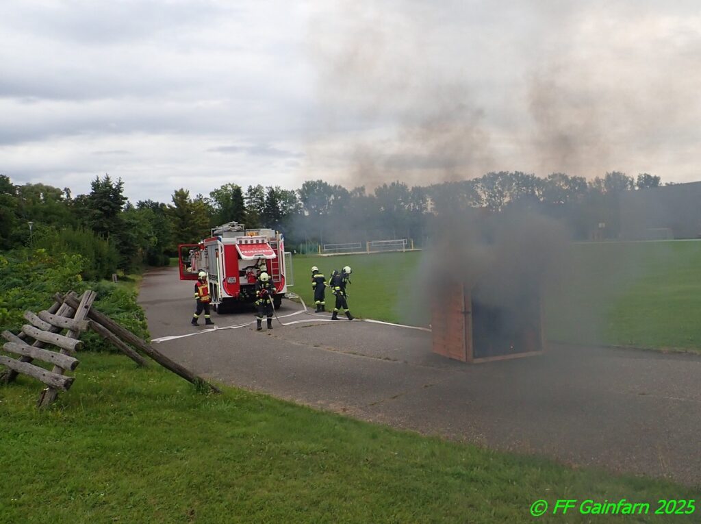 Insgesamt 6 Klassen wurde dabei in einem kurzen Vortrag (zuerst im Freien, dann aufgrund des Wetters im Turnsaal) das Wesen der Freiwilligen Feuerwehr und die FF Gainfarn vorgestellt, danach gab es eine kleine praktische Vorführung, bei der der Einsatz bei einer brennenden Gartenhütte inklusive Menschenrettung nachgestellt wurde.