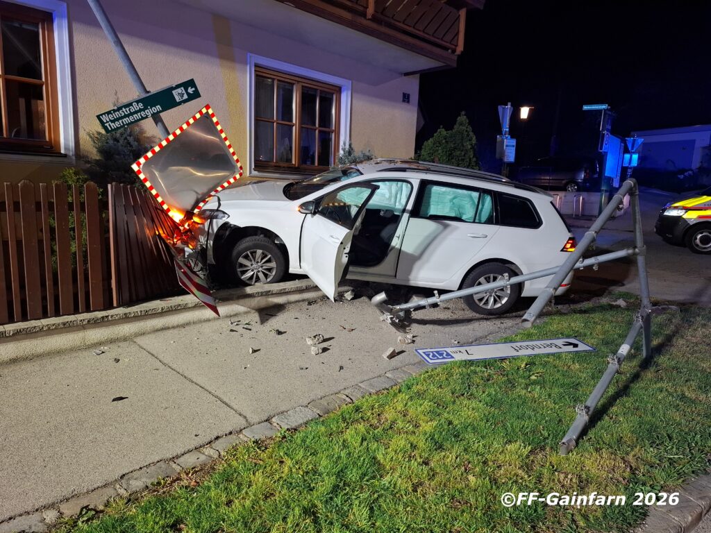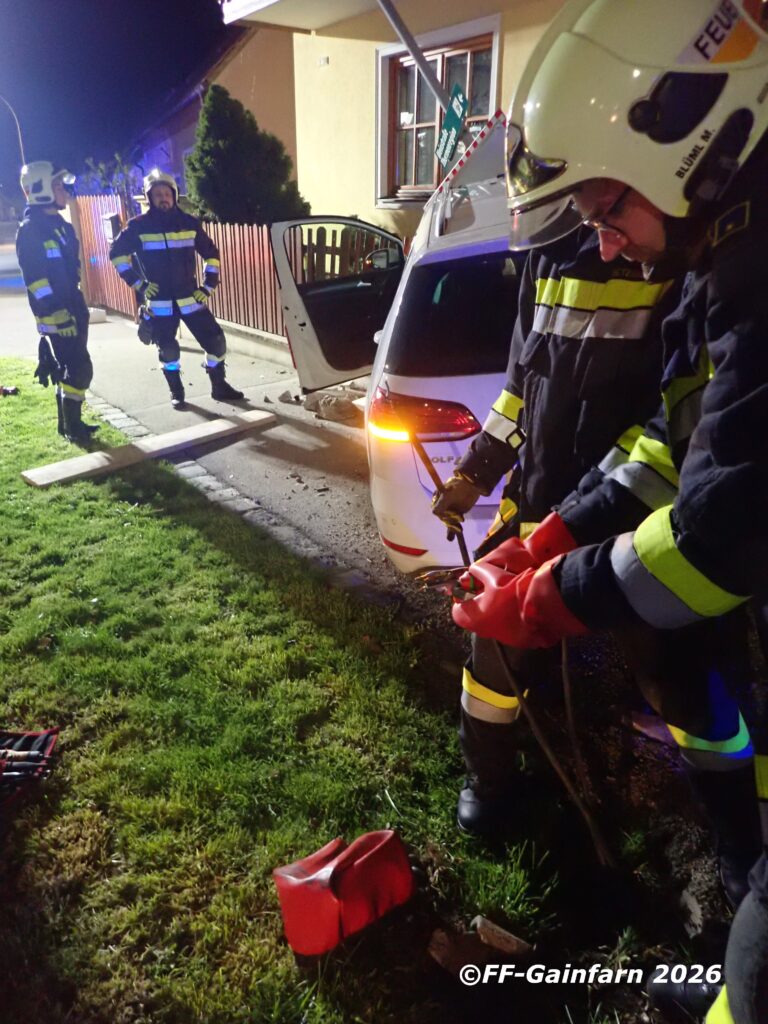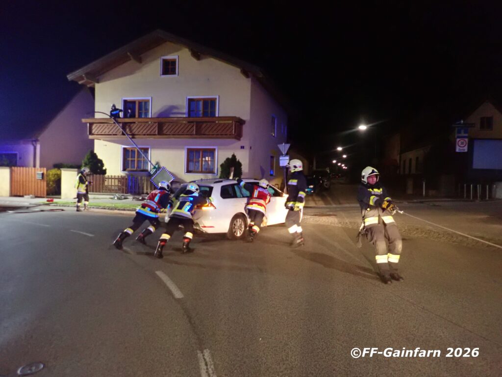 Am Sonntag den 12. April 2026 wurde die FF-Gainfarn zu einer Fahrzeugbergung nach Verkehrsunfall in die Großauerstraße, um 04:18 Uhr alarmiert. Ein Fahrzeug war aus bisher unbekannten Gründen von der Fahrbahn abgekommen und daraufhin in die Einfriedung eines angrenzenden Gebäudes geprallt.